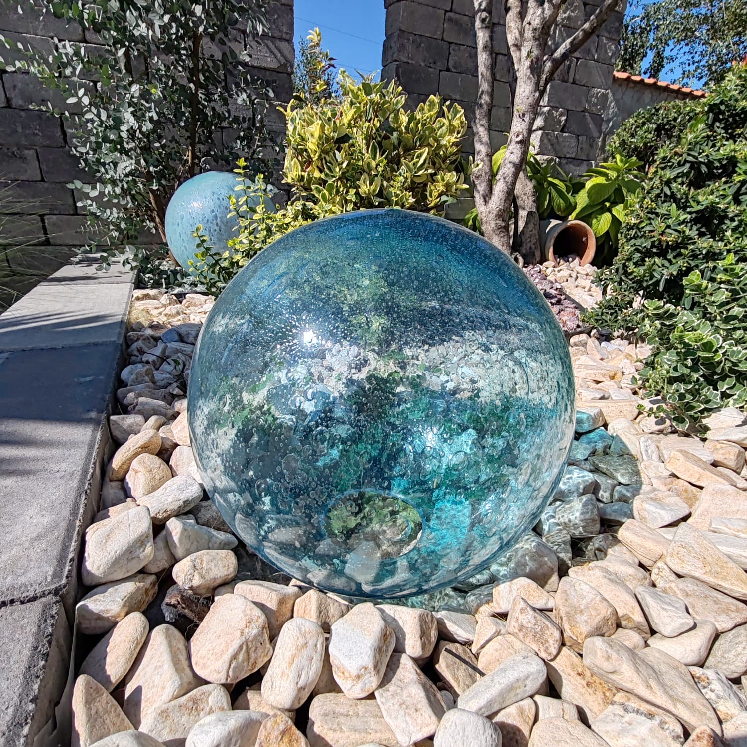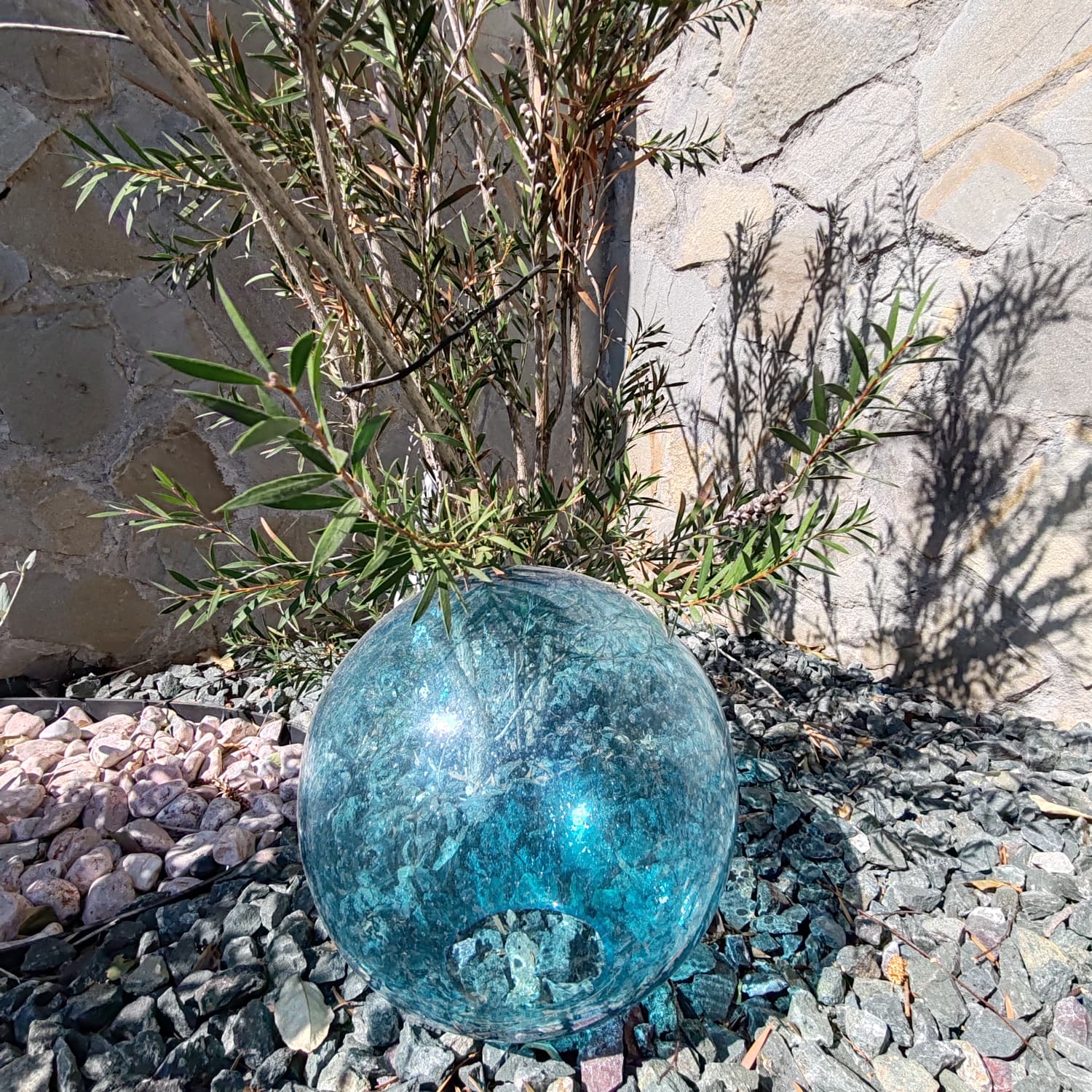 Glob decorativ din sticlă – Un accesoriu elegant care adaugă farmec și lumină grădinii tale. Realizat din sticlă rezistentă, cu reflexii spectaculoase, este ideal pentru a înfrumuseța gazonul, terasele sau aleile.