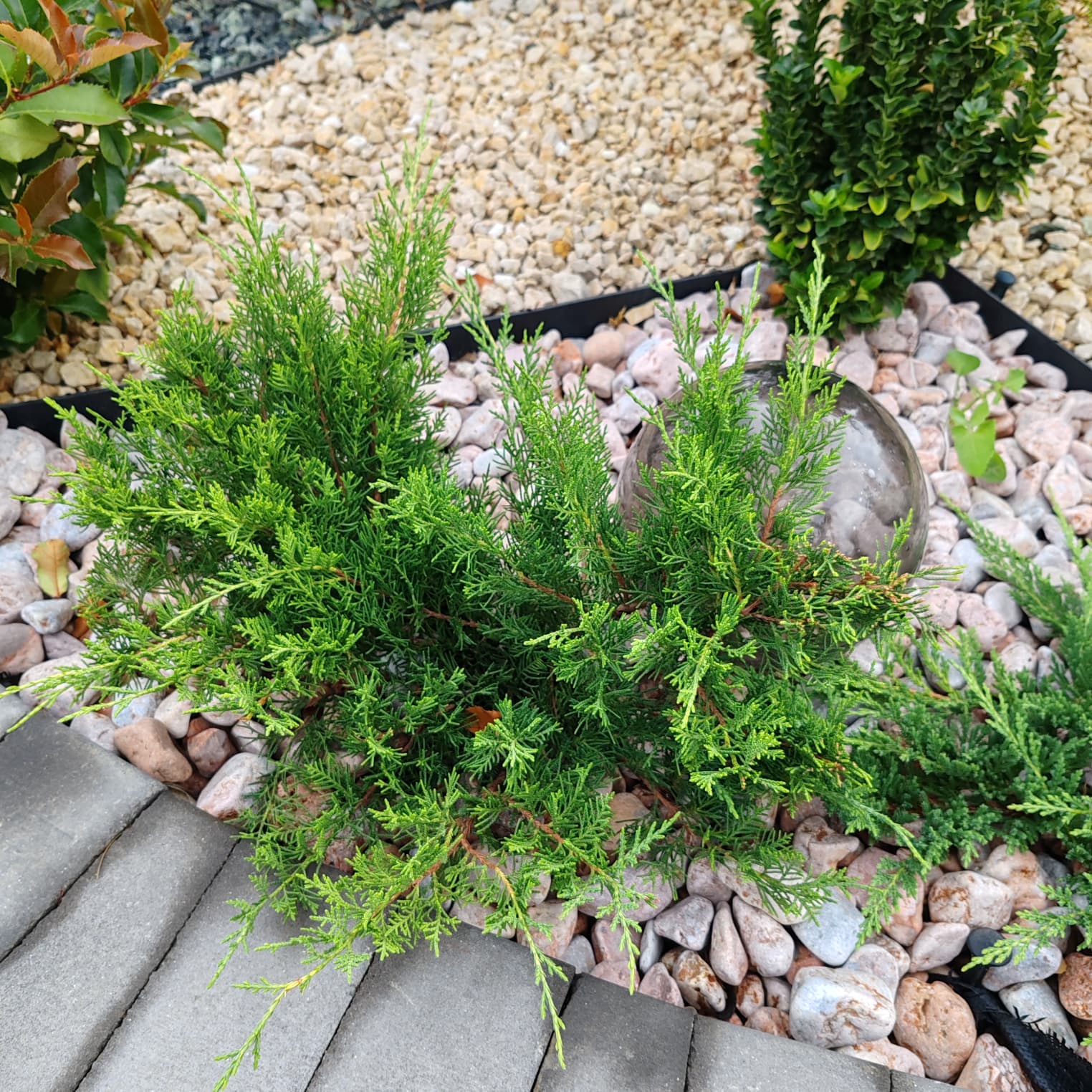 Juniperus × pfitzeriana ‘Aurea’ este un conifer ornamental de talie mică spre medie, cu creștere joasă și întinsă. Are frunziș galben-auriu intens, care aduce lumină și culoare grădinii pe tot parcursul anului. Datorită ramurilor arcuite și aspectului elegant, este folosit frecvent ca plantă de taluz, rocării sau în combinații decorative cu alte conifere.